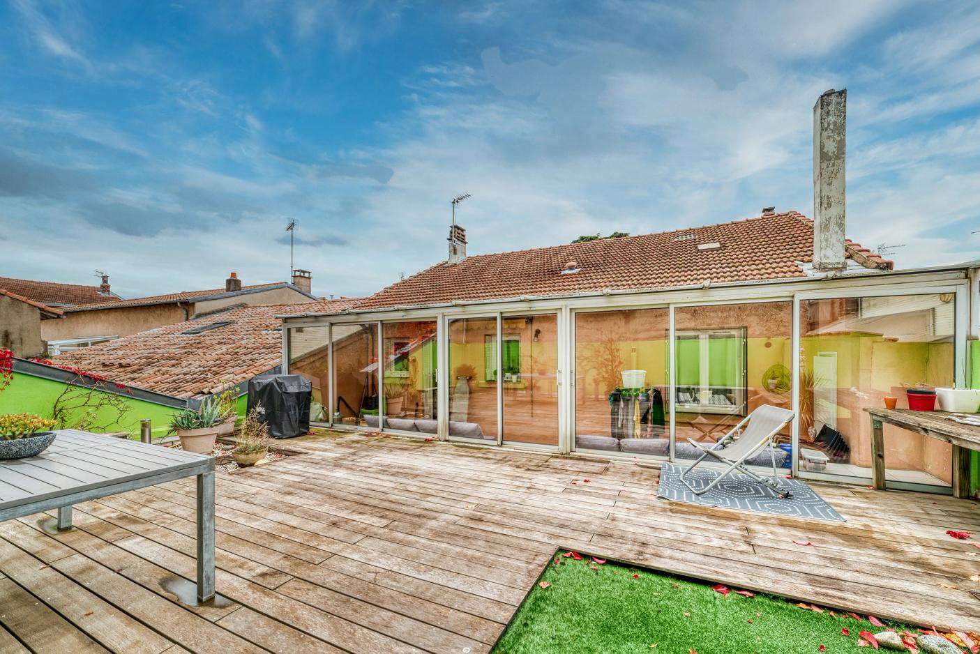 HAPPINESS CONSEILS vous propose à la vente cette maison de ville des années 1950 située au coeur de Valence. D’une surface totale de 139m² répartie sur deux niveaux, elle comprend également un grand garage ainsi qu’une terrasse (rare sur ce secteur) et un balcon. Rez-de-chaussée : Vous trouverez l’entrée avec marbre au sol donnant accès à la première chambre de 10m² ainsi qu'a l'escalier également en marbre. Un dégagement carrelée avec rangement dessert la salle de cinéma équipée (vidéo-projecteur, rampe de lampes, rangements, système son..) de 12m² pouvant être convertie en chambre (borgne), une salle d’eau, un WC indépendant ainsi qu’un grand dressing de plus de 7m². Le rez-de-chaussée est complété par un grand garage de 71,50m² avec porte électrique ainsi qu’une buanderie de 28m² À l’étage : Vous accédez à l’étage par l’escalier en marbre présent dans l’entrée du logement. Un dégagement avec marbre au sol et spots leds vous donne accès à une chambre, un second WC indépendant, une seconde salle d’eau ainsi qu’au salon séjour double de 35m². Cette pièce profite d’un joli parquet chevrons, d’une climatisation réversible ainsi que d’un accès au balcon. La cuisine de 13m² est entièrement équipée (lave vaisselle, plaque de cuisson au gaz et four), carrelée avec spots leds. Extérieur : La cuisine vous donne accès à la véranda de 20m² ainsi qu’à la grande terrasse de 60m² . L’entièreté du bien est équipé de double vitrage PVC. Au plaisir de vous faire visiter !