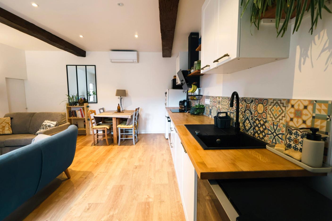 Découvrez cette charmante maison de ville T2 de 95 m² située au cœur du village prisé de Saint Donat sur l'Herbasse. Ce bien offre de nombreuses possibilités d’aménagement : au rez-de-chaussée, une agréable pièce de vie avec cuisine équipée donnant accès à une cour privée de 22 m², une pièce de rangement et une salle d’eau avec douche et WC. Ce niveau peut également être utilisé comme studio indépendant. À l’étage, une chambre spacieuse et une seconde salle d’eau avec WC vous attendent. Les combles de 30 m² sont aménageables, déjà équipés d’arrivées et d’évacuation d’eau ainsi que de vélux. Ce bien au fort potentiel permet la création d’une maison familiale avec 3 chambres ou de deux appartements distincts, offrant ainsi une belle rentabilité. Deux compteurs d'eau sont déjà présents. Il bénéficie également de la climatisation, du double vitrage bois et d’une toiture récemment refaite. Un vrai plus : sa cour privée de 22 m² et sa pièce de stockage, rare en plein centre du village. Ce bien saura satisfaire les besoins d'une famille tout comme d'un investisseurs grâce à sa belle rentabilité. À visiter sans tarder ! Prix : 169 000 €