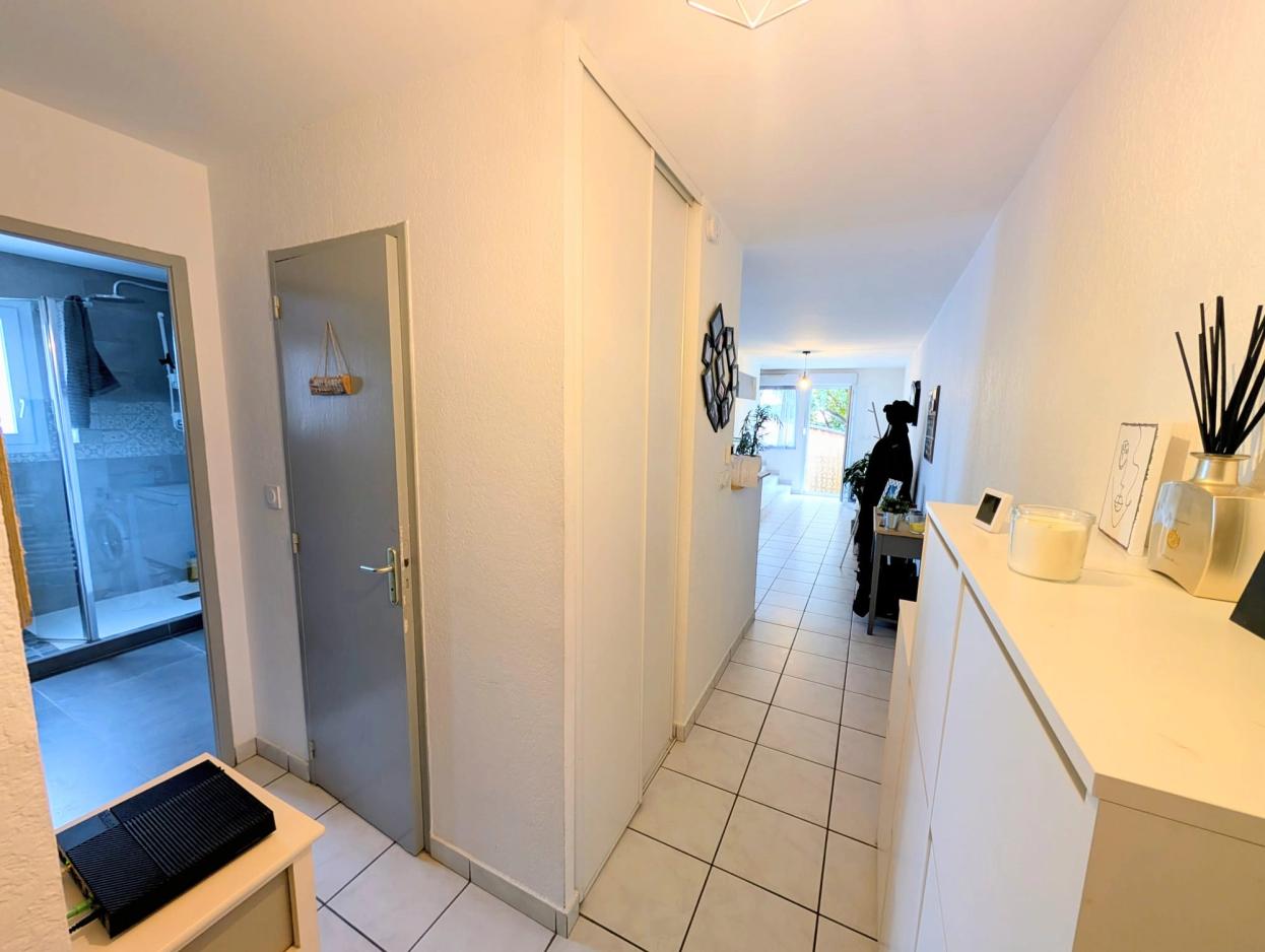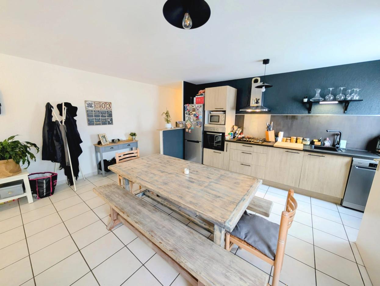 Happiness Conseils vous propose à la vente cet appartement idéal primo-accédant sans travaux de 57m² avec une belle terrasse, une place de parking privative ainsi qu’une cave. Basé sur la commune de Tain-l’Hermitage, proche du centre-ville et de ses nombreux commerces et commodités, ce bien se situe au premier niveau d’un immeuble en copropriété avec un accès direct sur la ViaRhôna ! Cet appartement est constitué comme suit : Un hall d’entrée donne accès à l’espace nuit composé d’une chambre, d’une salle d’eau équipée d’un sèche serviettes ainsi que d’un WC indépendant. Un couloir dessert la belle pièce de vie de 29m² composée d’une cuisine moderne et équipée (four, hotte, plaque de cuisson, lave-vaisselle) ainsi que d’un joli espace salle à manger. Un chaleureux espace salon d’environ 7m² ouvert sur la pièce de vie complète ce bien. Cerise sur le gâteau, une terrasse de 13m² ainsi qu’une cave située dans le garage de l’immeuble complètent ce bien. Vous apprécierez particulièrement les prestations de qualité que propose ce bien : double vitrage, volets roulants, cuisine équipée, chauffage individuel, terrasse, cave, fibre optique… Charges de copropriétés : 120€/trimestre Aucun travaux à prévoir dans l’appartement, vous n’aurez plus qu’à poser vos valises ! Au plaisir de vous le faire visiter.