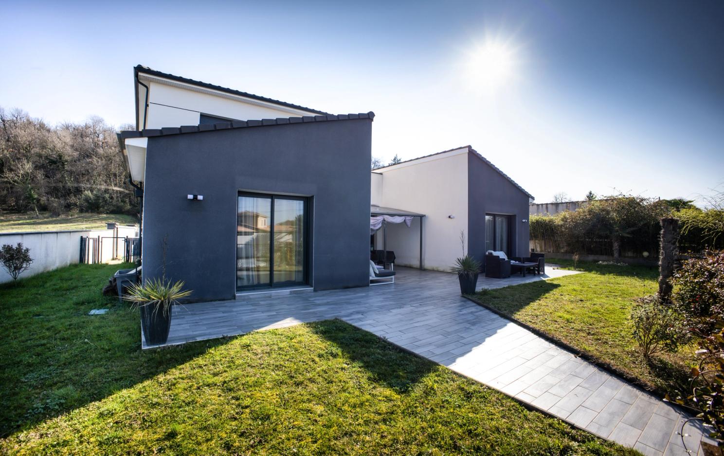 Propriété 7 pièces 175 m² Happiness Conseils vous propose à la vente cette superbe maison familiale et contemporaine construite en 2015. Idéalement située à Papelissier (Chatuzange-le-Goubet), aux portes du Vercors, dans un quartier résidentiel calme et recherché. Implantée sur un terrain clos et arboré de 865 m2, cette propriété offre 175 m2 habitables, un magnifique espace piscine ainsi qu'un garage. La maison est composée comme suit : Au rez-de-chaussée, un hall d'entrée dessert une magnifique pièce de vie lumineuse d'environ 70 m2. Elle se compose d'une cuisine moderne ouverte entièrement équipée de 16 m2 avec un accès à l'espace cellier/buanderie, d'un grand salon/séjour ainsi que d'un espace salle à manger donnant directement accès à l'extérieur grâce à deux grandes baies vitrées. Un espace bureau complète cette pièce de vie. L'espace nuit est composé de deux chambres ainsi que d'une suite parentale donnant sur le jardin. Une salle de bain avec WC, un cellier ainsi qu'un deuxième WC indépendant complètent ce premier niveau. À l'étage, vous trouverez deux autres chambres, une salle d'eau ainsi qu'un WC indépendant. Cerise sur le gâteau : un toit-terrasse avec une vue dégagée agrémente ce niveau. Les extérieurs ont été soigneusement aménagés: une piscine au chlore de 8 x 4 m, entièrement sécurisée, avec pool house et plage carrelée, une vaste terrasse en partie couverte donnant sur un jardin clos et arboré, ainsi qu'une cour en béton désactivé pouvant accueillir deux véhicules, accessible par un portail électrique. Prestations: chauffage au sol ( pompe à chaleur),climatisation, double vitrage, volets roulants électriques, isolation performante (sols, murs, toiture), visiophone, garage, aucun travaux à prévoir. Un bien idéal pour une famille recherchant confort et qualité de vie dans un secteur prisé. Au plaisir de vous faire visiter ! Surface : 175 m² Date de réalisation du diagnostic énergétique : 06/10/2025 Consommation énergie primaire : 59 kWh/m²/an Consommation énergie finale : 25 kWh/m²/an Montant estimé des dépenses annuelles d'énergie pour un usage standard : entre 830 € et 1 190 € sur les années 2021, 2022 et 2023 (abonnements compris).