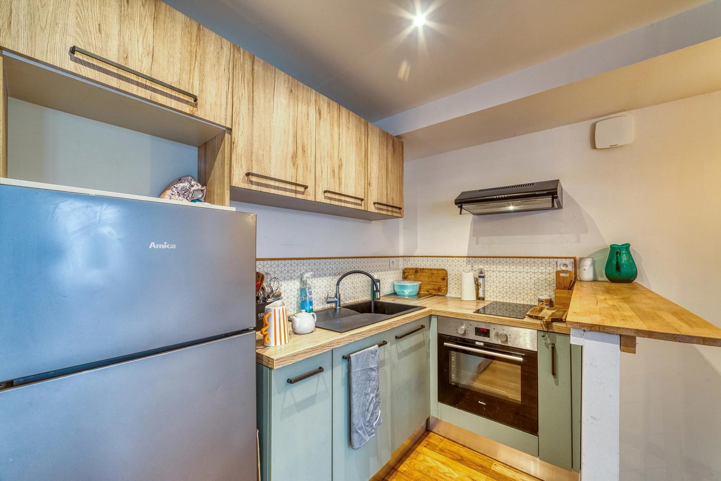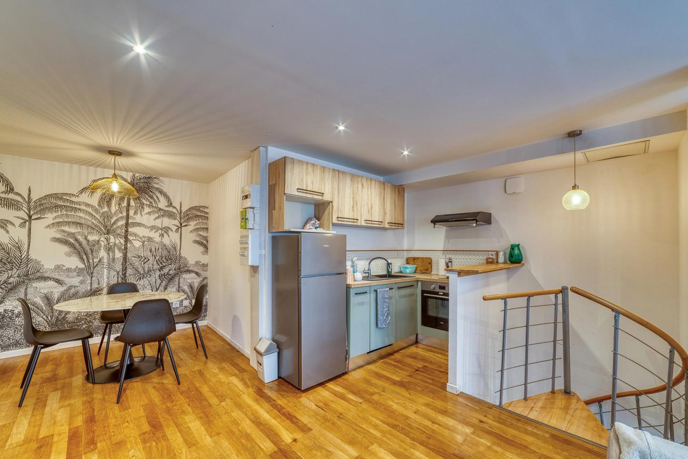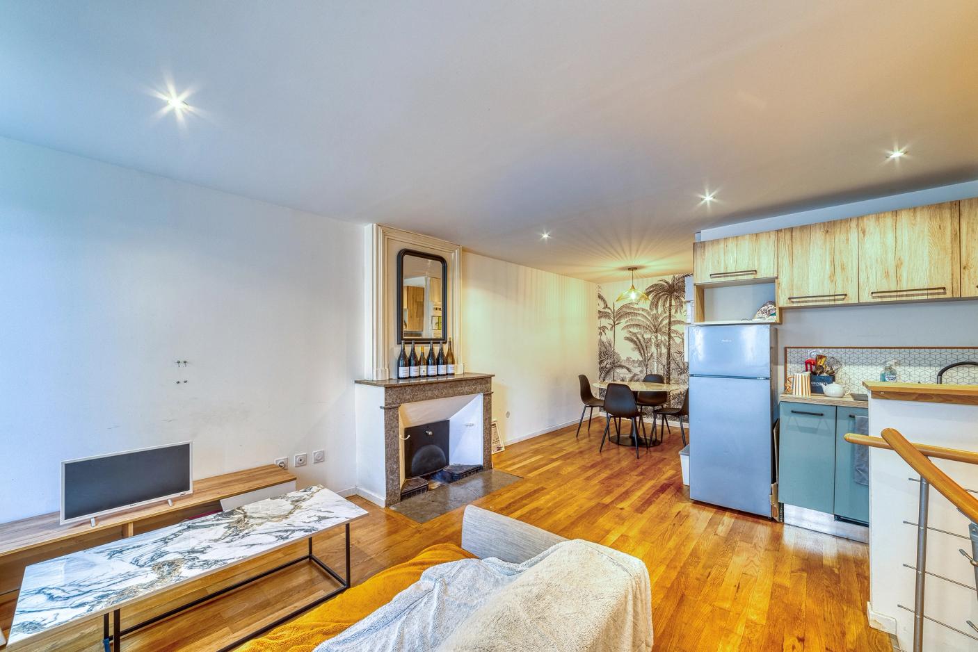 Happiness Conseils vous propose à la vente cet appartement idéal pour un primo-accédant, sans travaux, d’une superficie de 45 m². Situé sur la commune de Tournon-sur-Rhône, en hypercentre, à deux pas des nombreux commerces et commodités, ce bien se trouve dans un petit immeuble en copropriété bénévole, avec entrée indépendante. L’appartement se compose comme suit : Un hall d’entrée dessert l’espace nuit d’environ 19 m², comprenant une chambre, une salle d’eau équipée d’un sèche-serviettes, ainsi qu’un grand dressing. Un escalier mène à la belle pièce de vie d’environ 22 m², comprenant une cuisine moderne et équipée (four, hotte, plaque de cuisson, lave-vaisselle), ainsi qu’un agréable espace salle à manger. Un chaleureux salon avec cheminée décorative, ouvert sur la pièce de vie, complète ce bien. Vous apprécierez particulièrement les prestations de qualité que propose cet appartement : double vitrage, cuisine équipée, chauffage individuel, parquet en chêne, suite parentale, spots LED, fibre optique, et faibles charges de copropriété. Aucun travaux à prévoir dans l’appartement : vous n’aurez plus qu’à poser vos valises ! Au plaisir de vous le faire visiter.